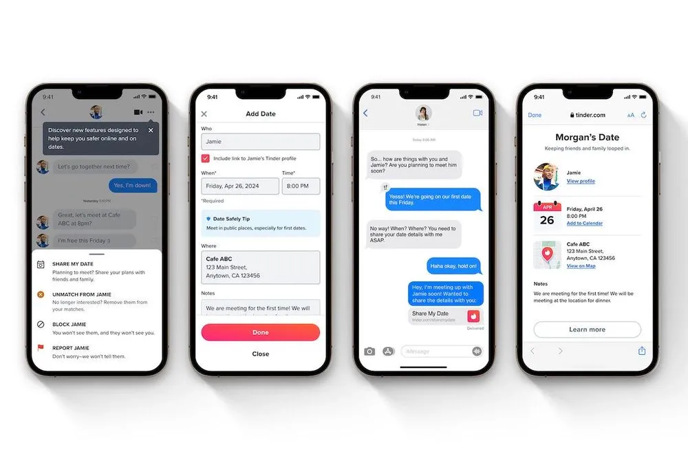 Trong bối cảnh việc chia sẻ thông tin hẹn hò với bạn bè và gia đình ngày càng phổ biến, Tinder đã phát triển tính năng 'Share My Date', cho phép người dùng gửi chi tiết cuộc hẹn của mình qua một liên kết trực tiếp từ ứng dụng. Liên kết này không chỉ bao gồm thông tin cơ bản như tên và địa điểm gặp gỡ mà còn có thể được chỉnh sửa cho tới khi cuộc hẹn diễn ra, giúp bảo đảm thông tin luôn chính xác và cập nhật. Điều này không chỉ tăng cường sự an toàn mà còn giúp người dùng cảm thấy thoải mái hơn khi chia sẻ thông tin với người thân.
